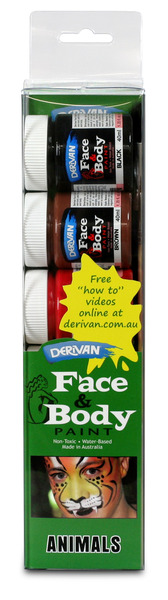 This handy face paint set is perfect for any animal or jungle themed party! This set includes 5 x 40ml jars of face paint (white, yellow, red, brown and black), 1 applicator sponge and 2 paint brushes, as well as face painting directions and examples to provide you with inspiration! Simply apply over a dried coat of barrier cream or moisturiser using the brush or sponge included in the pack, avoiding the eyes, mouth and nasal passages. Easily removed from skin and clothing with soap and water. Sure to be a big hit at the party!
