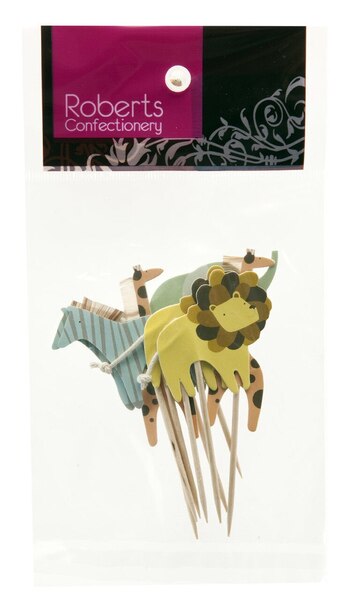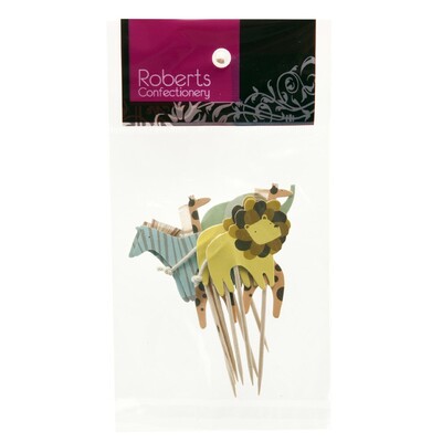 Pack of 8 assorted design baby animals cake topper picks, perfect for decorating cupcakes / cakes for any occasion! Each pick measures approx. 7-10cm in total height (cutouts on top range in size from approx. 4.5cm x 3cm to 2cm x 6cm.)