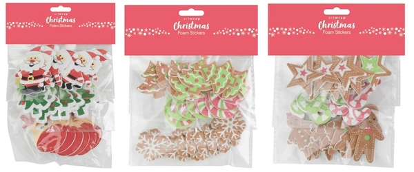 3 bags of foam stickers, perfect for any Christmas celebration! Each bag contains 24 assorted foam stickers (this product is a total of 72 foam stickers), each measuring approx. 3-5cm x 3-5cm.