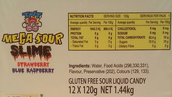 Each individual tube contains 120g of slime and measures approx. 18cm in total length. Flavours include strawberry and blue raspberry.