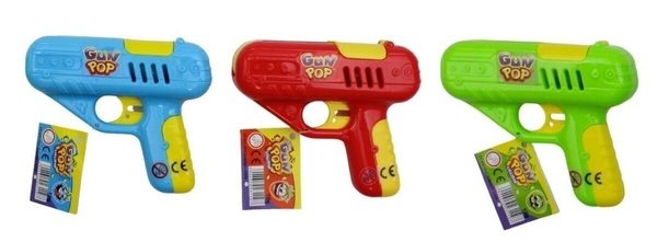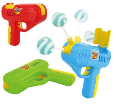 - Round ball-shaped lollipop in novelty plastic gun holder (You will receive 1 colour chosen at random)