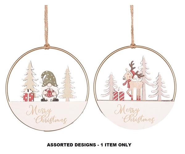 The inner layered laser-cut wooden panels add a 3D effect and the cute designs and Merry Christmas wording add an element of festive charm to the ornaments.