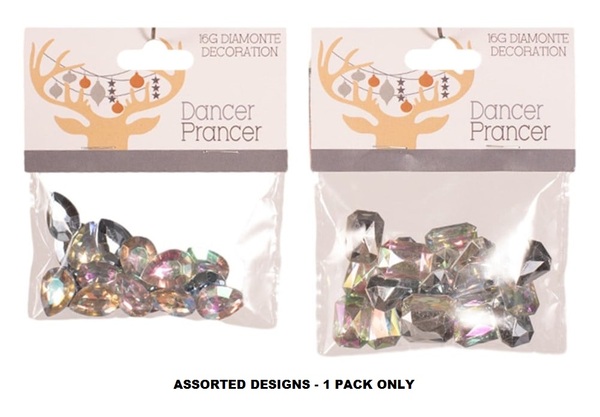 Each pack contains iridescent plastic gems in one of 2 shapes - teardrop or rectanglular.