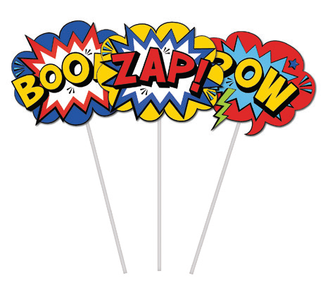 Pack of 3 assorted superhero themed cake topper picks, each measuring approx. 16cm in height (cutouts on top each measure approx. 5cm x 4cm.)