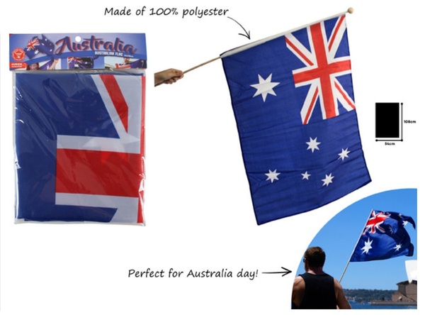 Australian flag with tab to allow flag to be placed onto a small pole as per picture (pole not included).
