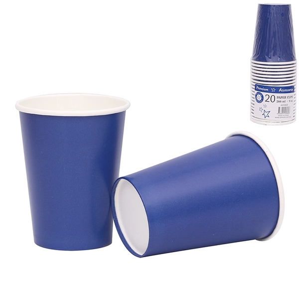 Blue 9oz. (266ml) paper cups - perfect for any occasion! 20 cups per pack.