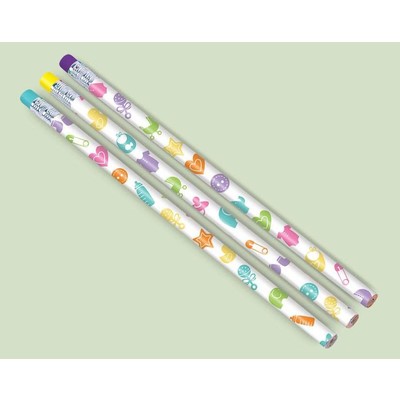 Pack of 12 pencils with attached erasers, each measuring approx. 19cm in total length.