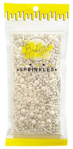 This pack includes silver and white sugar pearls,white jimmies & non pareils - largest pieces measure approx. 15mm.