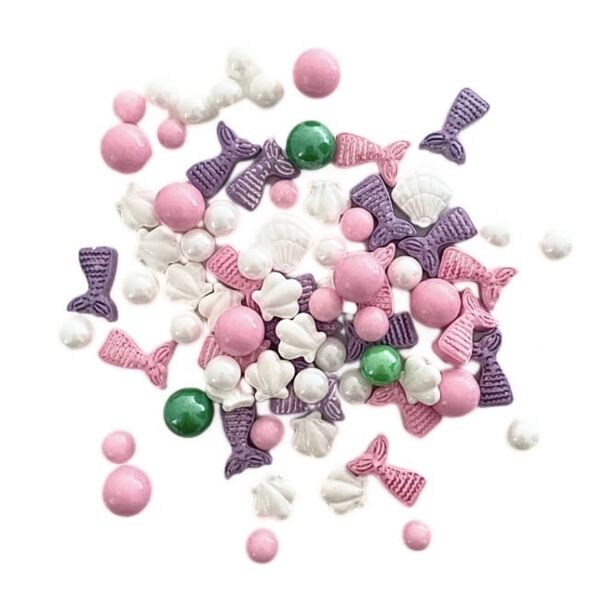 This lovely mix includes pink & purple mermaid tails, green, pink and white sugar pearls and white seashells.