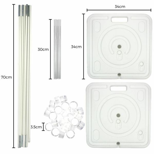 The assembled frame measures approx. 5 metres in length and the final dimensions of the arch will depend on how far apart you place the bases.
