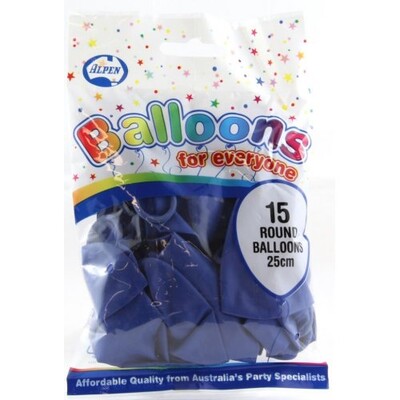 Decorate your party area with this pack of 15 round 25cm balloons in blue!
