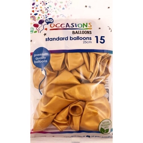 Decorate your party area with this pack of 15 round 25cm balloons in metallic gold!