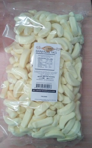 1kg of banana lollies, perfect for heaps of different occasions! Individual banana lollies measure approx. 4.5cm in length.