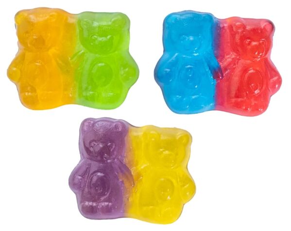 Pairs of gummy bears holding hands - double the fun and double the yum!