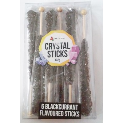Pack of 6 confectionery crystal sticks, perfect for decorating a geode cake or as a sweet party treat! Each stick measures approx. 17cm in total length and weighs approx. 22g. Sticks are individually wrapped.
