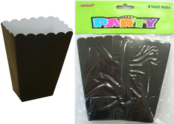 These black party treat boxes are perfect for any party! They're perfect for giving out treats and party favours, or for serving party treats in!