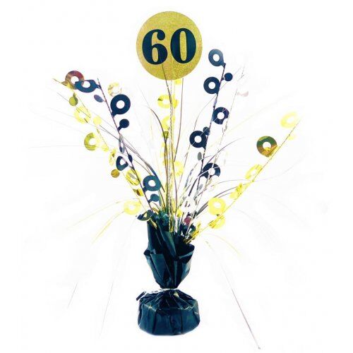 Featuring a black wrapped base and silver, gold & black strands this eye-catching centrepiece will make a stunning addition to your birthday celebration.