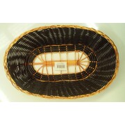 Oval black bread basket with gold detailing, measures approx. 24cm x 15cm at the top (17cm x 9cm at the bottom) and 6cm in depth. Polypropylene.