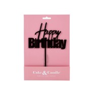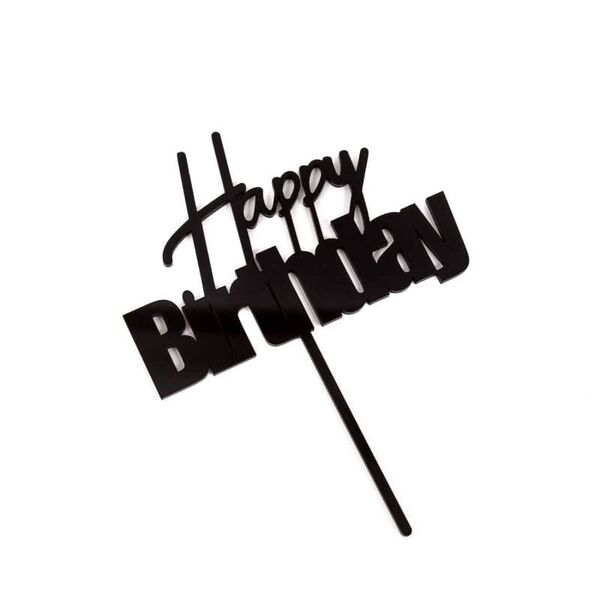 Measuring an impressive 13cm (w) x 9cm (h), this topper is made from black acrylic and features 'Happy Birthday' wording.