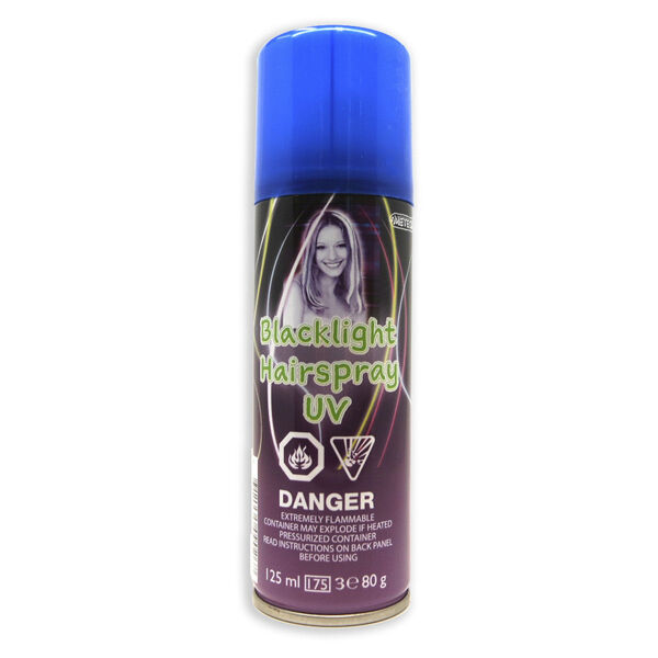 This product is a special effects hairspray that is invisible in normal light but glows under ultra violet disco lighting.