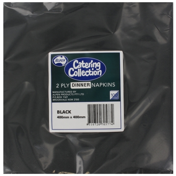 Carton of 1000 (10 packs of 100) premium black 2 ply dinner party napkins suitable for large meals. Colour coordinated to match plastic tableware. Dimensions are 40x40cm for folded out napkin - folded napkin is 20cm x 20cm.