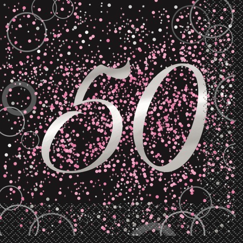 Pack of 16 lunch-sized 2 ply paper napkins (with some foil patterning on them), each measuring approx. 16cm x 16cm (32cm x 32cm when folded out.)