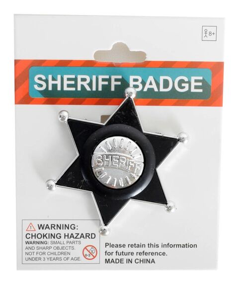 It features a black plastic star with silver Sherrif decal and trims and a clip back - simply slip over a pocket, vest or collar for a quick and easy accessory.