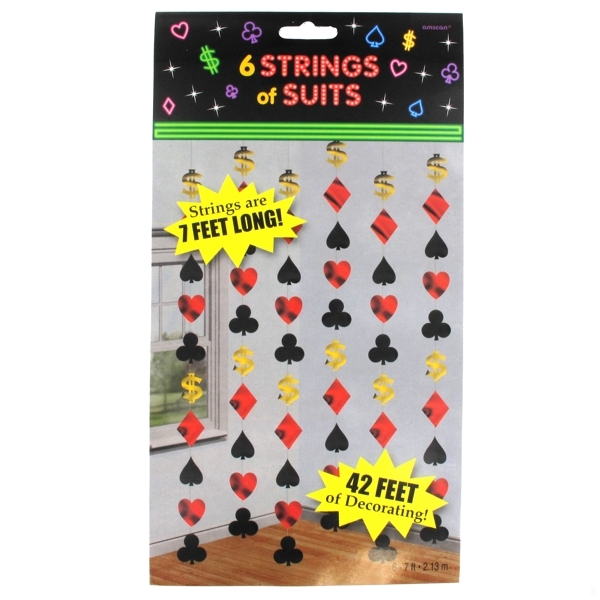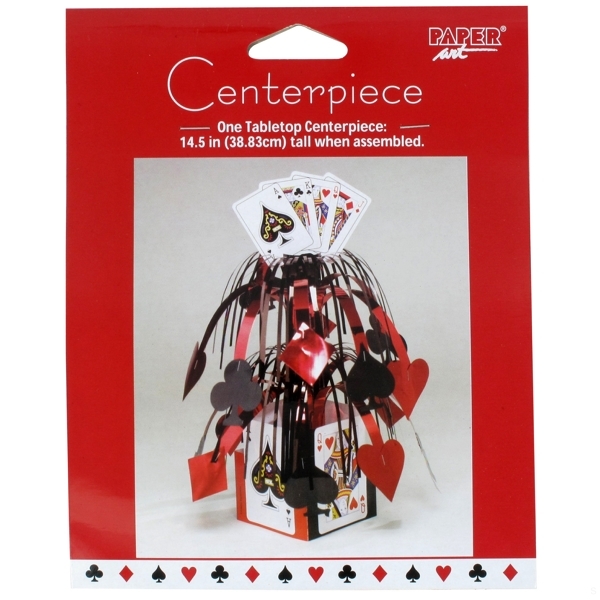 As you can see above, due to the colours of a deck of playing cards, the three main colours that are a necessity for a casino themed party are red, black & white. These colours can be used as a starting point for finding the right decorations and tableware for your party. There's heaps of different hanging decorations, such as tissue paper pom poms in red, black or white, hanging swirls in these three colours, casino theme specific decorations and, of course, playing cards themselfves can be used as decorations. Whether they be scattered across a table, hanging on strings or attached to a toothpick to stick into party foods, they're a surefire way to convince all of your party guests that they've been magically transported to a casino!