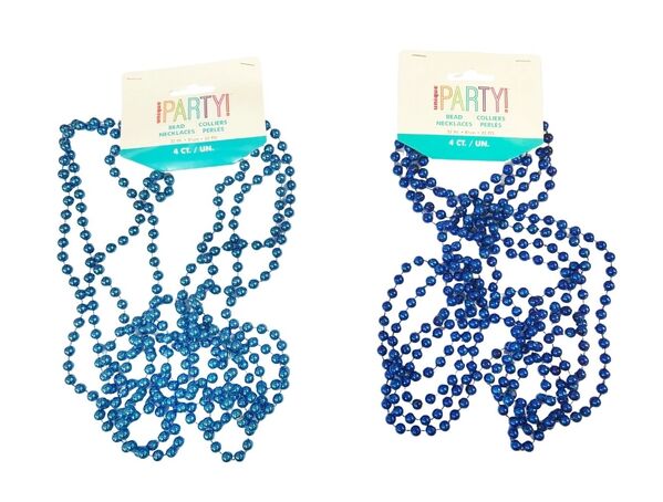 These 4 blue bead necklaces will dress up heaps of different costumes! Each necklace measures 32in. (81cm) in length.