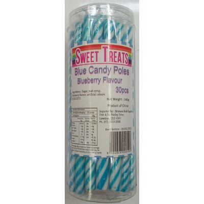 These delicious blue blueberry flavour candy poles will be a favourite amongst guests at any occasion! With 30 x 18g poles in a pack, they're easily coordinated with the rest of our confectionery and party supplies for your complete party planning needs! Poles measure approx. between 16cm-18cm in length. Poles are individually wrapped.