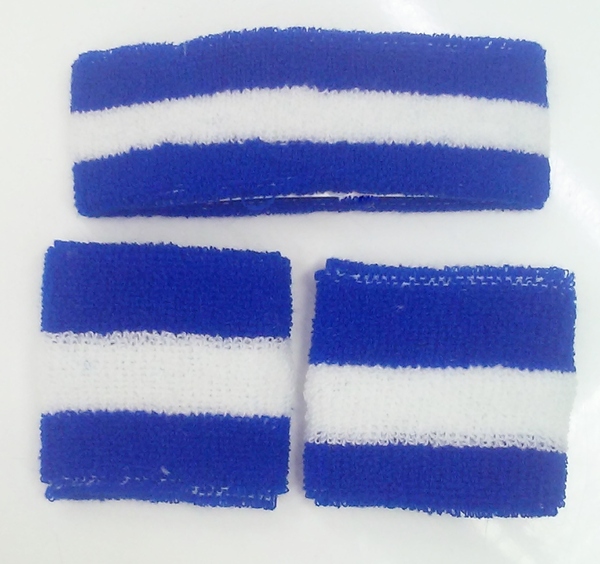 Pack includes 2 wristbands and 1 headband made from stretchy towelling type material designed to soak up your hard earned sweat beads.