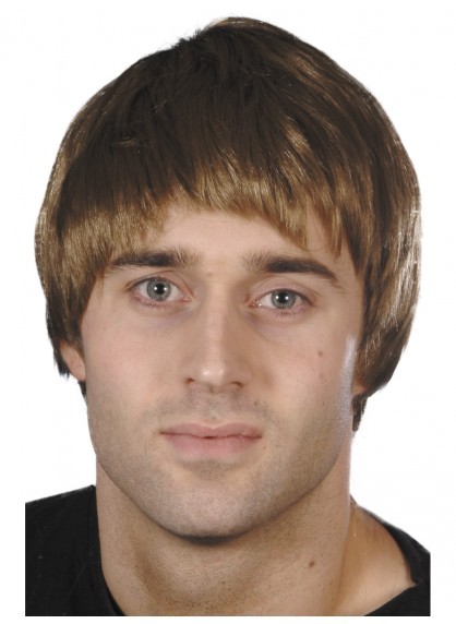 Brown short guy male wig with a fringe, designed to fit most adults.
