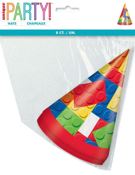 Your guests are sure to love the these hats featuring brightly coloured building bricks - perfect for birthdays, building parties and more!
