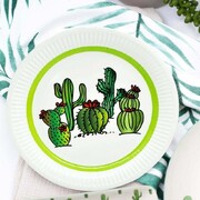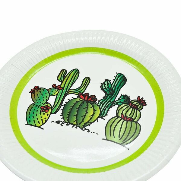 Your guests are sure to love the fun design of these plates featuring assorted tall, short, round and prickly cacti.