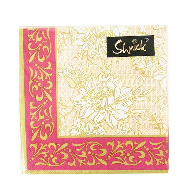 Featuring a delightful floral design with pink & gold deco border, these 2 ply napkins are sturdy, absorbent and ready to mop up any spills.