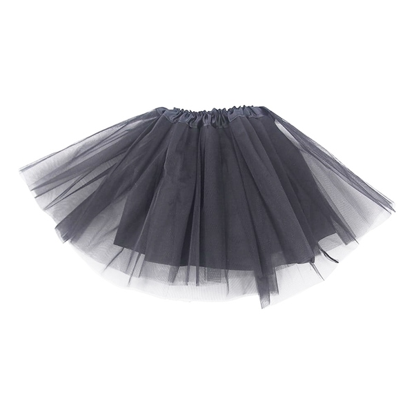 This tutu has two outer layers of soft black tulle with a layer of black satin fabric lining underneath.