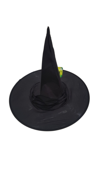 This black witch hat will turn heads at the Halloween party! Designed to fit most children, it's easily coordinated with the rest of our witch and Halloween costume accessories for your child's complete spooky dress up needs! Hat measures approx. 34cm in height and head cavity circumference measures approx. 55cm.