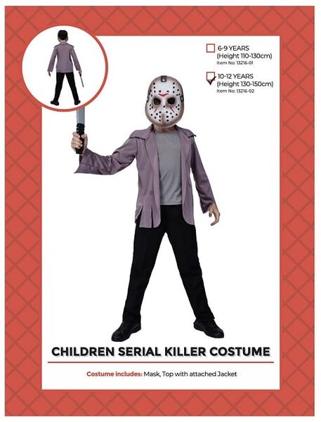 Styled on the character of Jason Voorhees from the Friday The 13th movie series, this killer costume is perfect for Halloween or Villains themes!