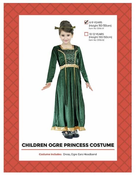 Featuring deluxe fabric, elegant trims and signature green ears, this costume is perfect for Halloween, Book Week, Princess, Shrek themes and more!