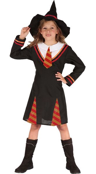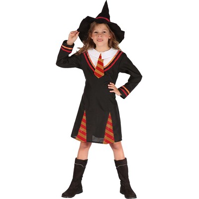 This child student witch costume is perfect for any Halloween celebration! Includes the hat and dress with tie. Costume is a size medium (designed to fit a child between approx. 120cm - 130cm in height.)