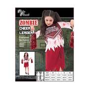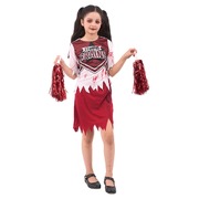 The skirt is dark red stretch fabric and has an elastic waist, tattered hem and blood spatters.
