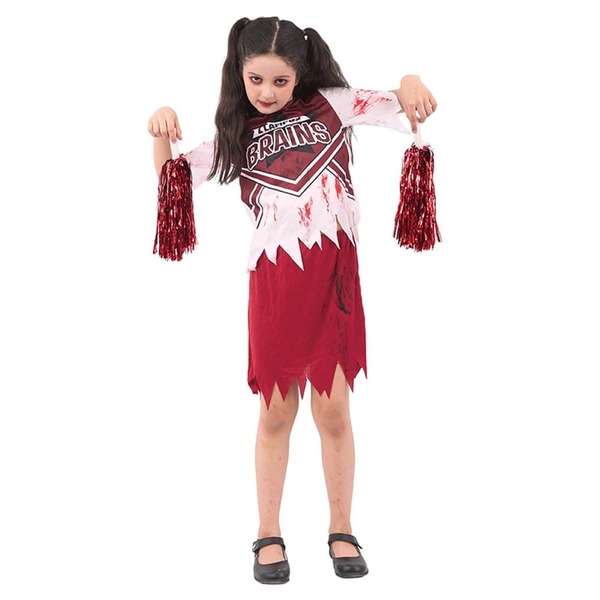 The shirt is made from white stretch fabric with tattered sleeves and hem & 'Z Campus Brains' print and has fake blood smears and spatters print.
