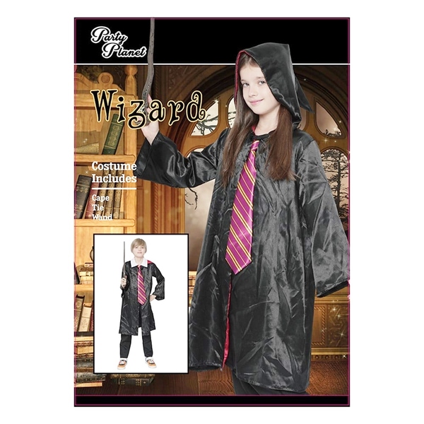 Perfect for Book Week, Halloween and Harry Potter themes, this fabulous costume set includes a robe, tie and wand - everything a student wizard or witch needs to learn spells, herbology and more!