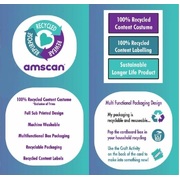 This sustainable and reusable fancy dress costume is designed to be as environmentally friendly as possible while being practical and durable. It is manufactured with 100% recycled materials, is machine washable up to 30°C for repeat wear and is sub printed only with no glitter or additional processes used. All plastic elements have been removed from the cardboard packaging so it can be entirely recycled.