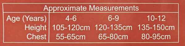 SIZE: Age 4-6 years height 105-120cm - see size chart for more information