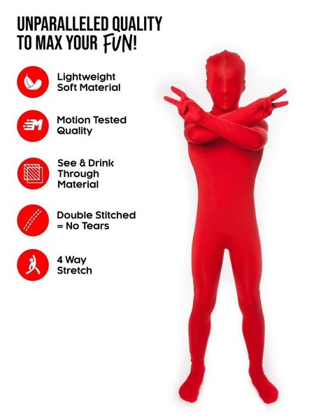 The kids Morphsuit is based on our original and best design and is a unique costume that is bound to turn heads and get attention at any party or event.