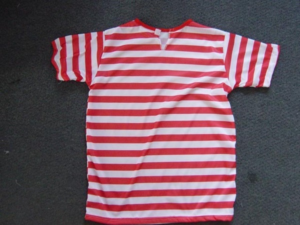 Red & white striped short sleeve t-shirt in a small size. Designed for Children best fit for ages 5-6.