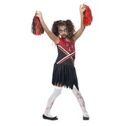 The dress is made from black stretch fabric and features red & white front cross-over stripes, fake blood stains, DED lettering and a tattered edges.