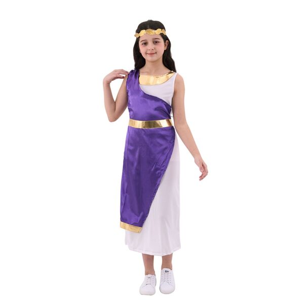 With its classic draped design and gold accents, this outfit captures timeless style - perfect for young royals and goddesses alike!