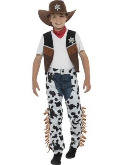 This child Texan cowboy costume is perfect for any costume party, especially for a Book Week celebration! This costume includes hat, neck tie, waistcoat, badge and chaps. Costume is a size medium (approx. 7-9 years old, 130-143cm in height.) Easily coordinated with the rest of our costume supplies to ensure that the costume is one to remember!